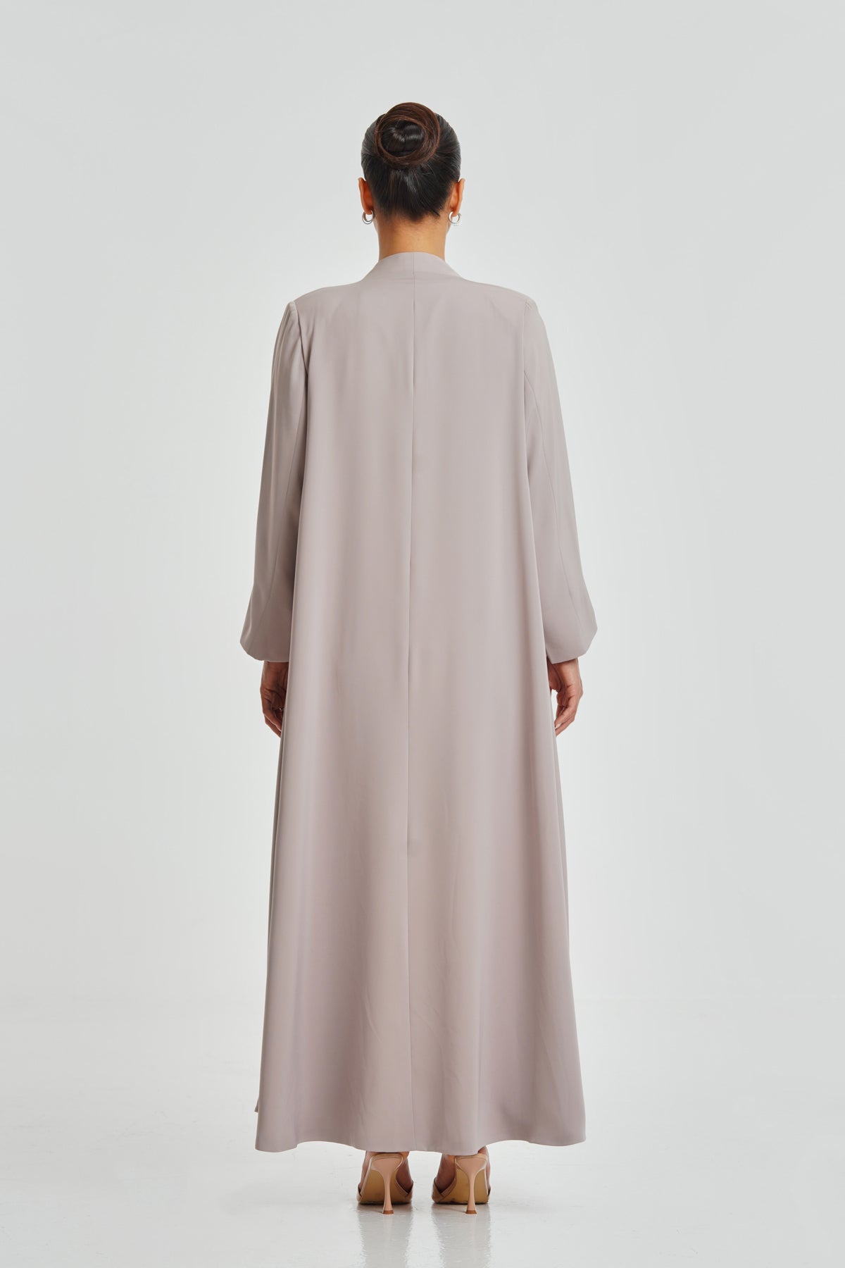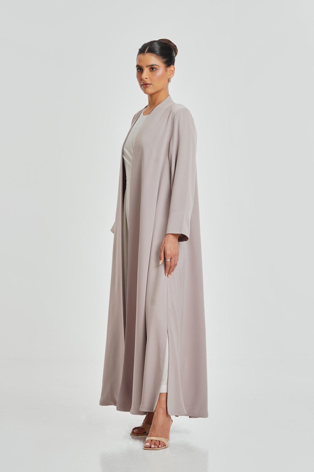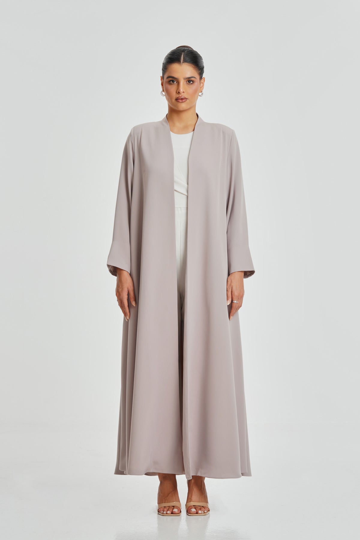 A comfortable and elegant beige Korean Nada abaya designed for everyday wear. Made from soft, high-quality fabric with a luxurious Italian satin lining, this abaya offers a refined look suitable for every woman. Its classic design is crafted to complement all body shapes, making it a perfect choice for daily elegance.