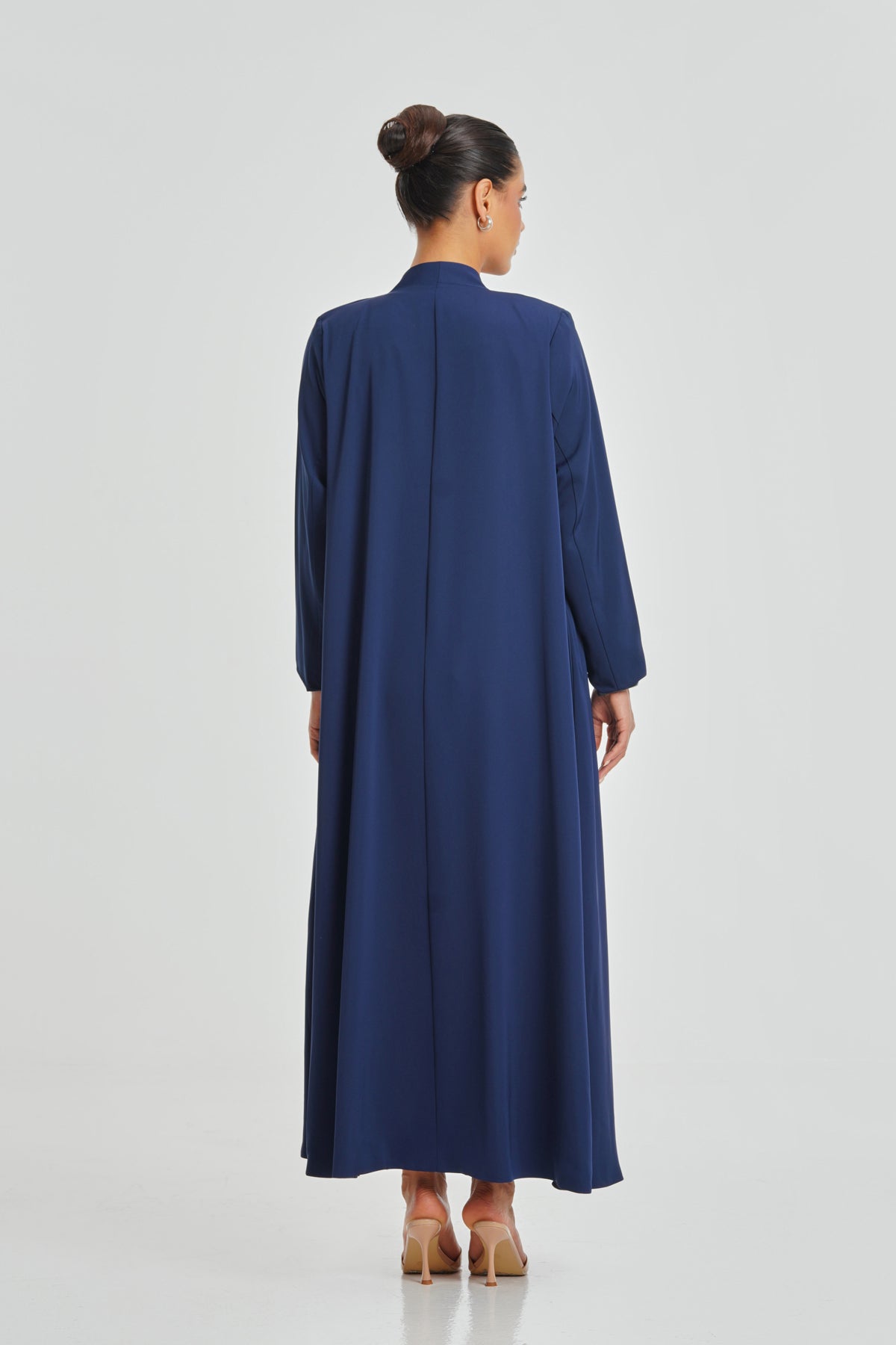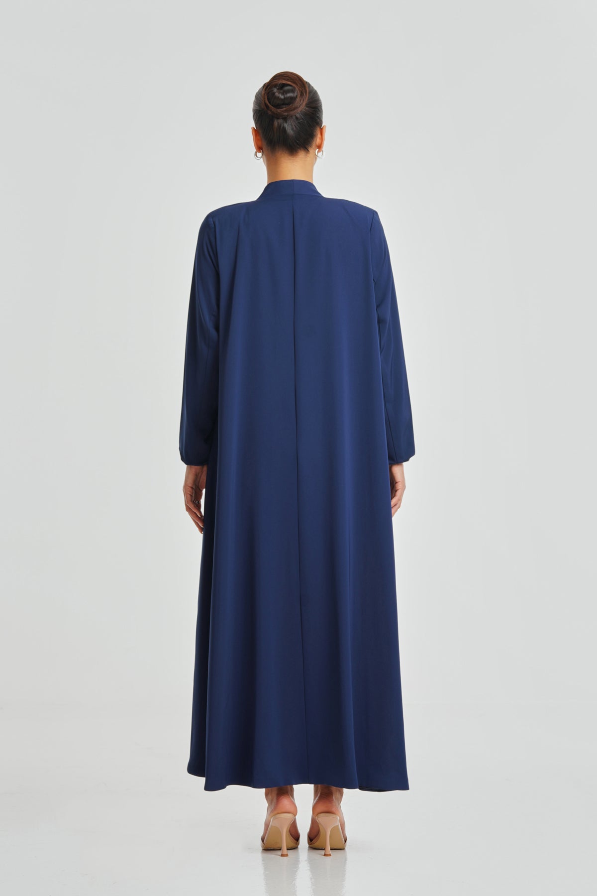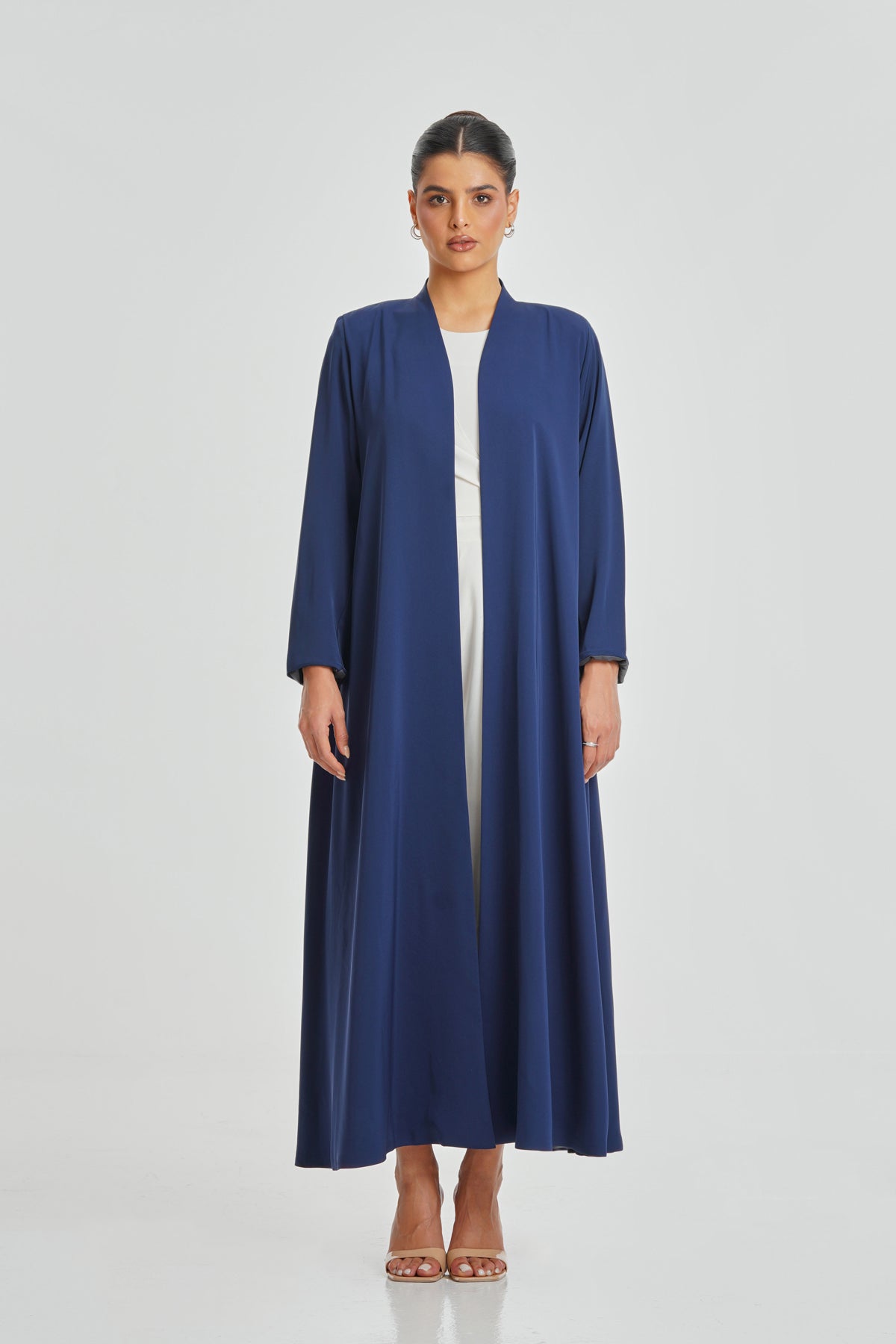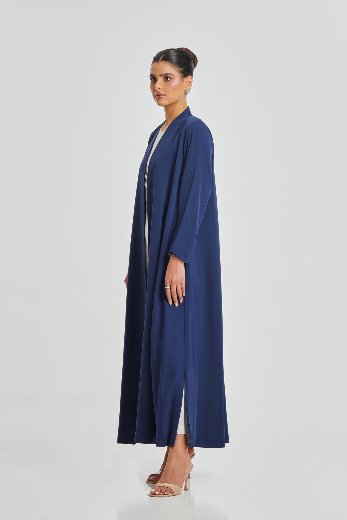 A refined navy blue Korean Nada abaya lined with premium Italian satin. Designed for daily comfort and timeless elegance, this abaya suits every woman and flatters all body shapes with its classic structure.