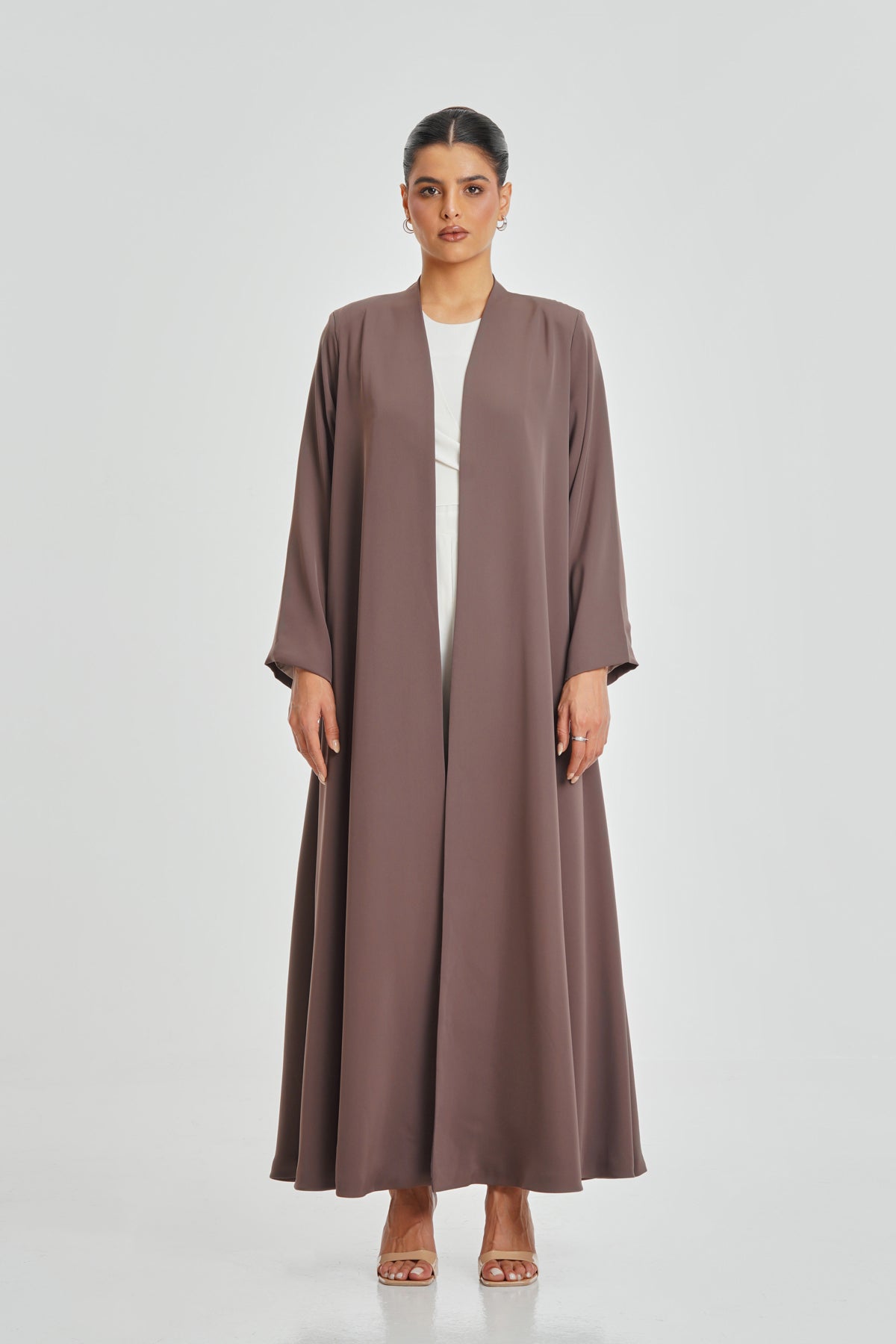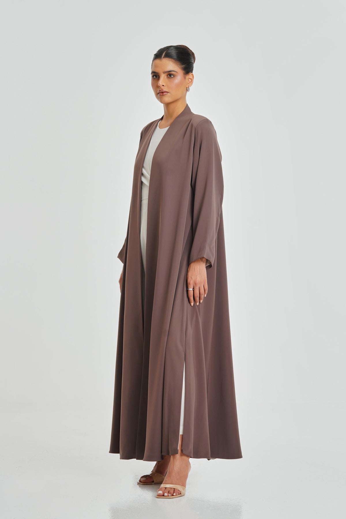 A graceful purple Korean Nada abaya designed with premium fabric and Italian satin lining. Comfortable for everyday dressing and crafted to complement all women with its elegant cut.